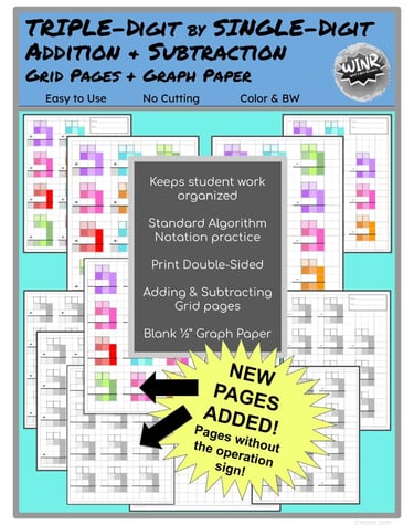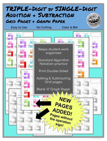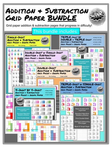 BUNDLE of all the addition and subtraction grid-paper practice pages